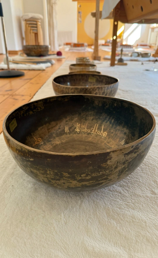 - 9 Klangschalen, 2 Gongs, Klangliege mit Vor- und Nachgespräch