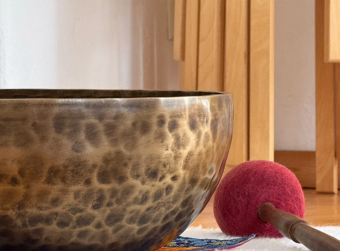 Alles beginnt mit einem Moment des Ankommens. In einem einführenden Vorgespräch schaffen wir den Raum für deine Bedürfnisse, bevor du auf der bequemen Klangliege vollkommene Entspannung findest. Das Besondere der Therapie nach Walter Häfner ist das präzise Zusammenspiel: Ich platziere neun bis dreizehn Schalen gezielt um und auf deinem Körper. Ergänzt durch Gongs und Zimbeln entsteht ein facettenreicher Klangteppich, der deinen Verstand zur Ruhe kommen lässt und dich in eine Sphäre jenseits der Zeit entlässt.